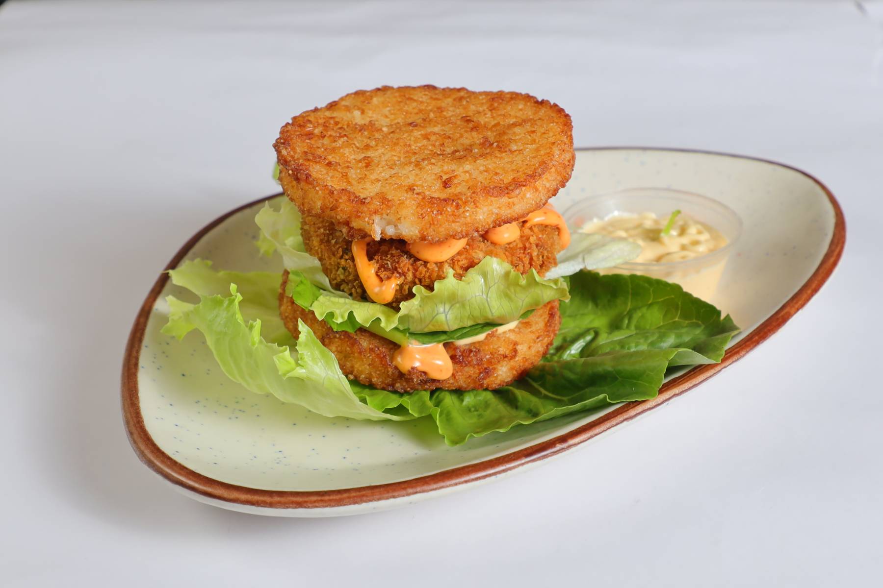 Edamame and sweet corn patties served between crispy, pan fried rice buns. Included add ons: spicy mayonnaise